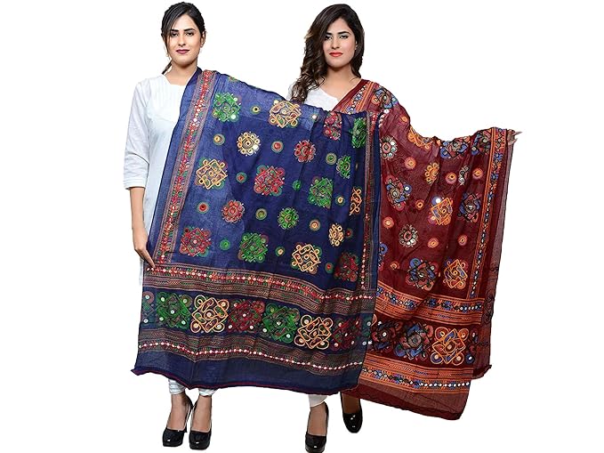Diamo Cotton Embroidered Paper Mirror Work Dupatta For Womens Pack Of 2
