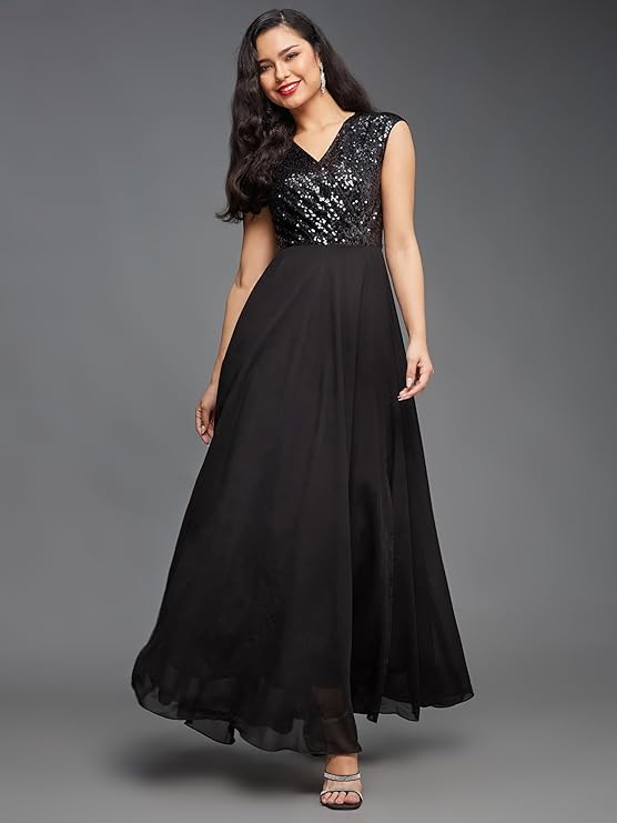 Miss Chase Women’s V-Neck Cap Sleeved Solid Wrap Maxi Dress