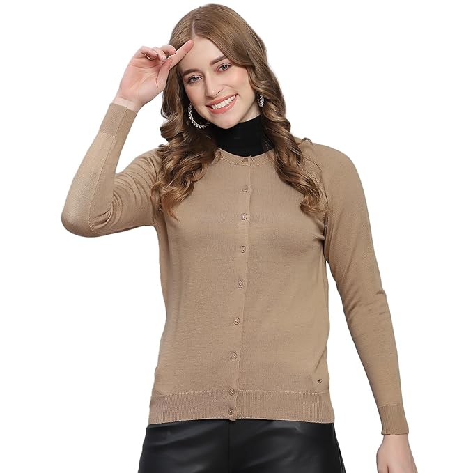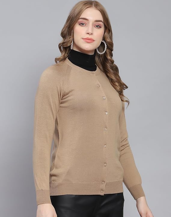 Monte Carlo Womens Solid Round Neck Full Sleeve Cardigan